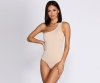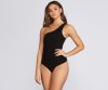 Ready to add another essential to your gotta-have roster? Then behold your next bodysuit! It features all-over ultra-slim ribbing, an off-shoulder neckline with single, wide tank-style strap, a thong-style bottom, and two-button snap closure. Bodysuit is made from a densely woven knit with moderate stretch.