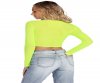You only mess with the best style! This fab crop top features a round neck, long fitted sleeves, and a cropped hem. The bright neon yellow top is composed of a sheer and stretchy mesh fabric with a form hugging style. Bralette not included with garment.